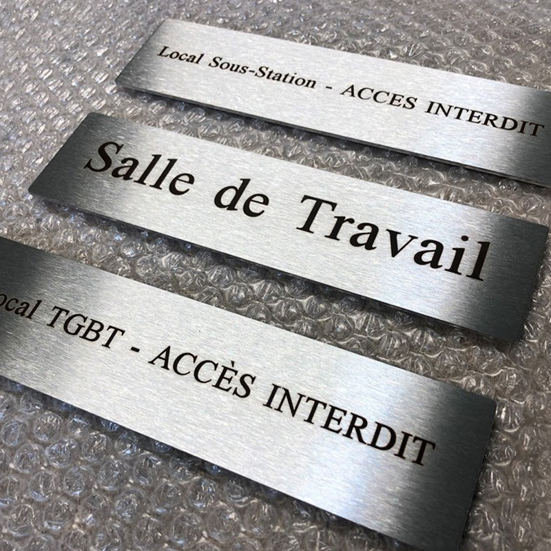 Fabrication de plaques en aluminium, inox ou laiton : bureaux, portes, entreprises, numéros, boîtes aux lettres et signalétique.