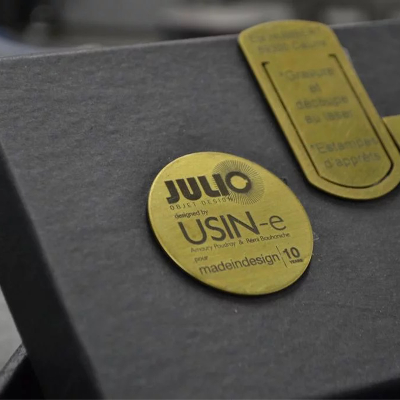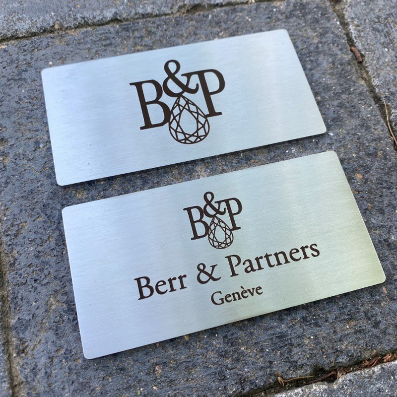 Personnalisation précise sur aluminium, inox, laiton, bois ou acrylique : plaques professionnelles, signalétique, logos et éléments décoratifs.